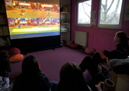 Die verantwortlichen Jungs haben den Projekttag in Eigenregie geplant und vorbereitet. Sie haben ihre Konsolen, Kopfhörer und Switches mitgebracht sowie eine Leinwand und einen Beamer organisiert.