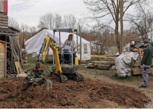 Der zukünftige Standort für das Backhaus neben der Schmiede wurde bereits freigeräumt, als Nächstes werden die Fundamentsteine gesetzt. Der Bagger steht bereit und die Steine werden geliefert. Für die Holzbauarbeiten haben wir am vergangenen Haus-, Hof- und Gartentag ein Zelt aufgestellt, um witterungsunabhängig arbeiten zu können. An dieser Stelle vielen Dank für die Unterstützung bei der Planung und Durchführung durch Daniel, Felix, Jörg, Sebastian, Stefan und Wolfgang!